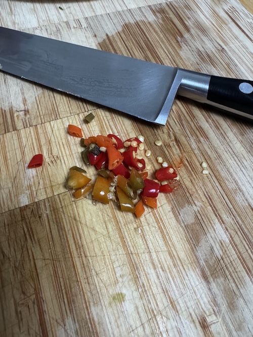 chachak i denne’ – cut the hot peppers