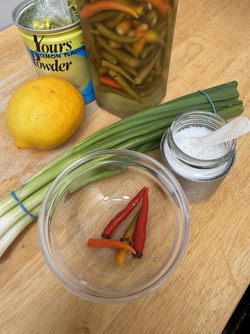 Lemon, setboyas betde – green onions, asiga – salt, donne’ – hot pepper